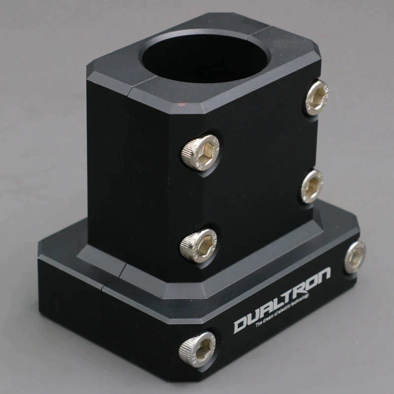 66 No Fold Triple Clamp for all 2 Thru Bolt Silver and Red Jam Nut Headsets. This clamp is a replacement to the stock double collar. Select the silver variant if you have a 2 through-bolt steering tube with silver jam nuts. Select the red variant if you have a 2 through-bolt steering tube with red jam nuts. The clamp is black as shown in photo.
