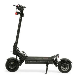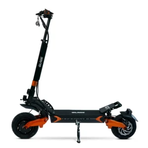 A new champion in the 48 volt scooter world has emerged, feast your eyes on the Blade Mini Pro from Teverun! This 48 volt dual motor scooter features a top speed of 35mph and a real-life range of over 20 miles in a single charge. This mid-level performer is an eyecatcher and a great ride with 9×3 tubed tires, mechanical disk brakes, spring suspension, and all the programmability offered in the MiniMotors ey3 throttle. This model is perfect for riders looking for a bit more performance than the single motor offerings without going up in size to the 60 volt + options. Lock this awesome new folding mechanism into the riding position, unlock your scooter with the NFC electronic lock, and ride off into the sunset on the new Blade Mini Pro.
